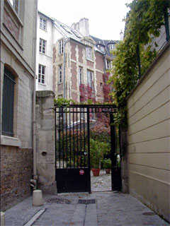 どんどん行くと黒い鉄柵があって奥にはレンガの建物。「行き止まりかぁ」と思いましたがここは通れるとの事なので、中に入ってみましょう。この18世紀ゴシック様式の建物はパリ北西の街、ルーアンの大司教のパリ別邸だったんだそうです。